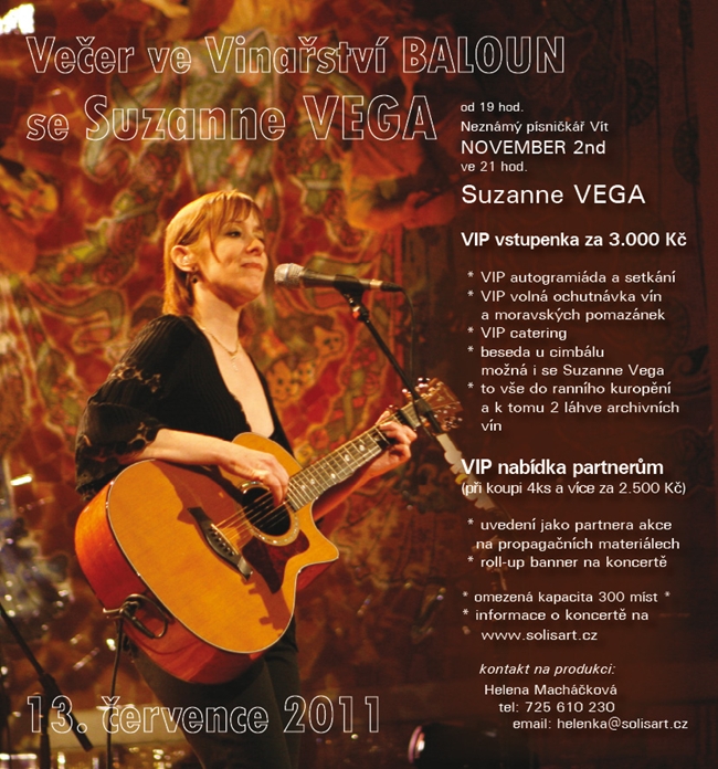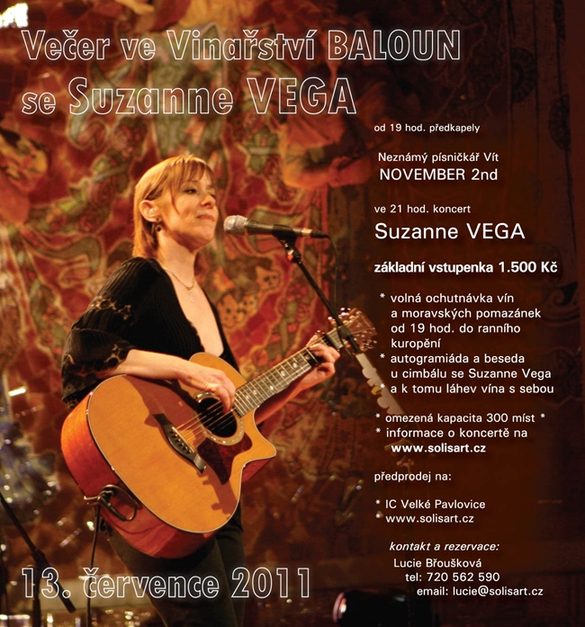 U Balouna chladí víno, dnes přijede slavná Suzanne Vega